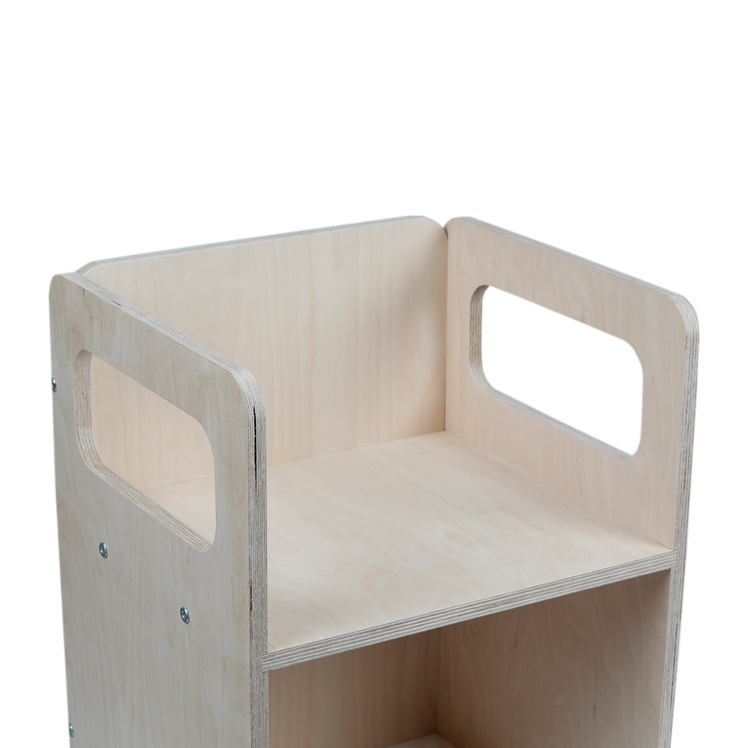 Alan tasarrufu sağlayan akıllı çözüm! Hem konforlu bir oturak hem de geniş bir oyuncak sandığı. Huş ağacı dayanıklılığı ve Mokko Montessori kalitesiyle üretilen bu ünite, çocuk odalarını düzenlemek için özel üretim olarak hazırlandı.